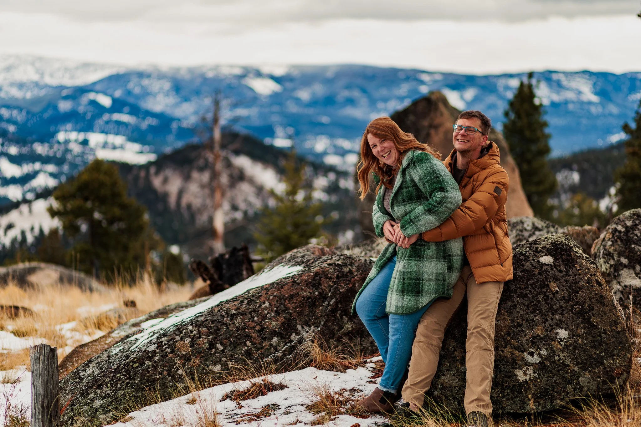 A winter engagement session in the Helena-Lewis and Clark National Forest just outside Helena, MT offers a dramatic backdrop for couples who love Montana’s natural beauty. The Elkhorn mountains, snow-covered pines, and quiet forest roads create an intimate setting that feels both adventurous and peaceful — a perfect location for Abi and Shane.